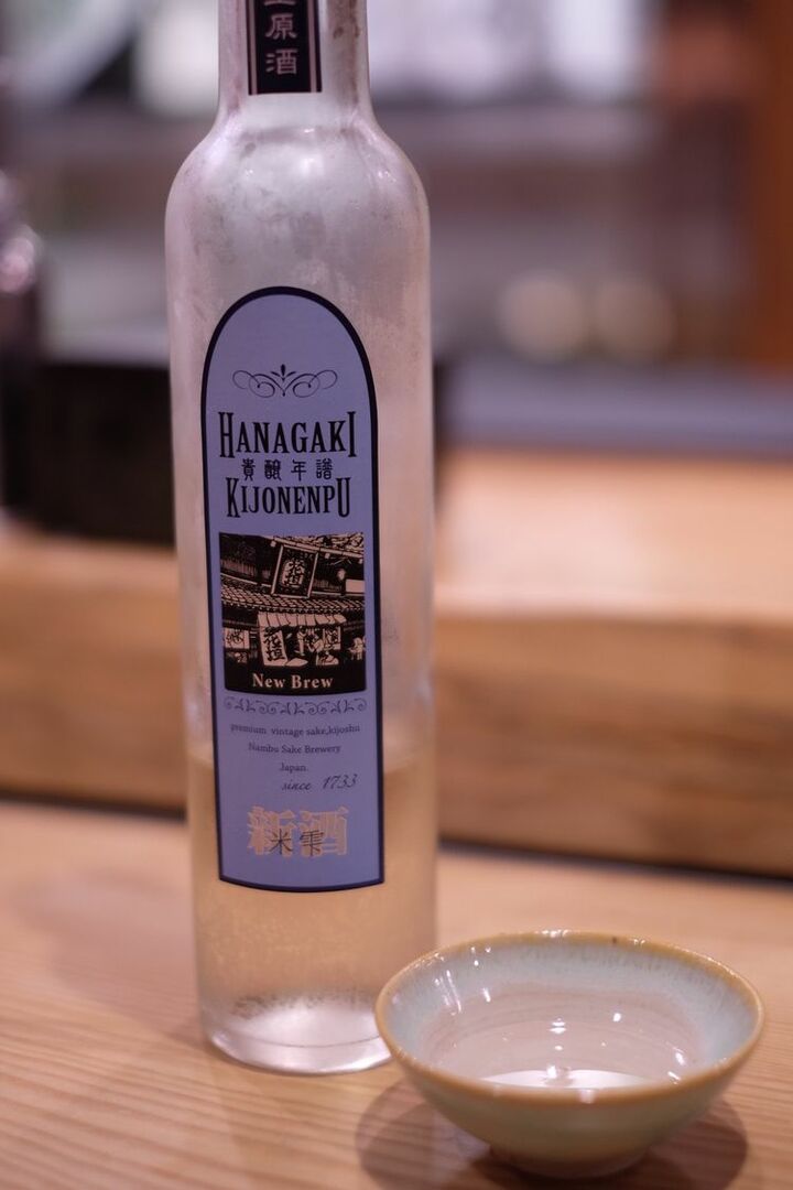 『貴醸年譜無濾過生原酒』。一見ラベルが白ワインのようだがこれも日本酒