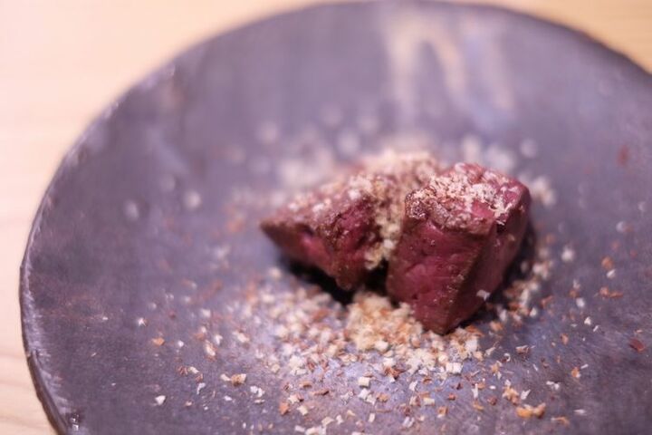 7,500円コース(全17品)のうちのほんの数品を紹介したが、ゲストの要望に合わせてコース内容はできる範囲でアレンジが可能。「お腹いっぱいになってきたのでポーション小さめで」、「脂身はしんどいので、赤身やレバーで」など、自分の胃袋にも無理を強いることなく食事を楽しめる。お腹の減り具合やその時の気分に合わせて量や内容に対応してくれるホスピタリティは、接待やデートといった大切なシーンで重宝すること間違いなし。
