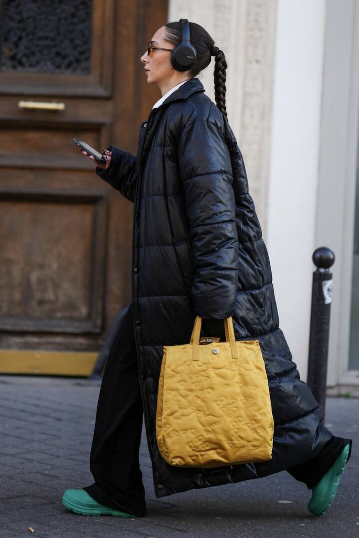 全身をすっぽりと覆うマキシ丈のダウンコートなら、寒い日の外出も億劫になりません。膨らみのあるコートを取り入れつつ、黒をベースに鮮やかなカラー小物を掛け合わせると、モダンな着こなしが完成。