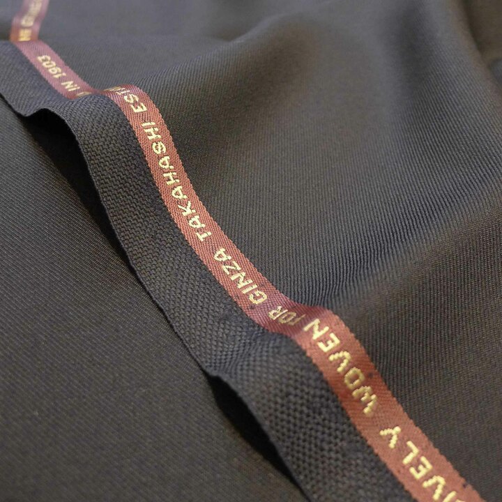 今回選んだ濃紺の無地。ノーブルな雰囲気が漂う正統的な色合いこそ、スリーピーススーツのデザインによく似合う。英国産による同店のオリジナル生地だ