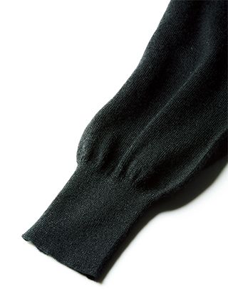 キュッと絞ったリブの袖口は、手首を華奢に見せ、女性らしく上品なニットを印象づけます。 -