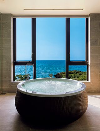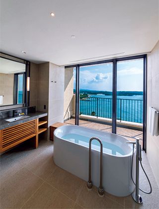 オープンエアバルコニーはもちろん、バスタブに浸かりながらゆったりと海を眺めることができます。