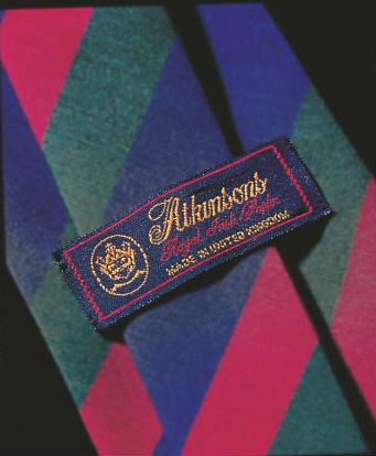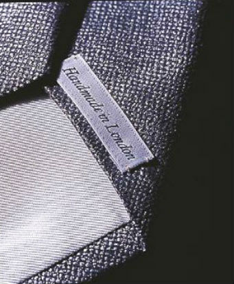 一方の「アトキンソン」は、英国保守本流のレジメンタル・ストライプをつくり続ける。海兵隊や空軍、そして王立海軍の伝統的なレジメンタルを模したデザインと色で、まさに正統派の胸元を飾るにふさわしいネクタイを具現化する。そんなレジメンタルを見事につくり上げるのが、こだわりの生地ロイヤル・アイリッシュ・ポプリン。経糸にシルクを、緯糸にウールを使い、弾力性に富むネクタイ地として優れた生地を、長年変わらずに使用する。