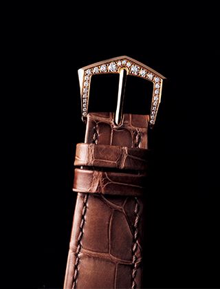 ストラップのバックルの細部にもダイヤモンドを丹念にセッティング。全方位隙のないエレガンスを演出します。