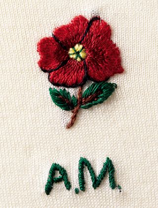 ヘビやハチ、王冠など、おとぎ話のなかから飛び出してきたかのような愛らしい刺しゅうモチーフに、イニシャルはアルファベット最大3文字まで。さらにマシーンメイドか、味わいのあるハンドメイドかを選択。