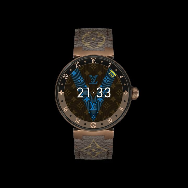 ブラック、レッド、ホワイトのモノグラム、「L」と「V」が施されたブルー×イエローの4種類がラインアップ。美しく収まる充電ケースが付属する。同時に発売されたコネクテッドウォッチ「タンブール ホライゾン」とリンクするデザインだ。デジタル時代のルイ・ヴィトンのスマートガジェットを堪能してほしい。