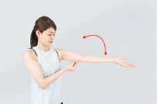 つまんだまま、腕を曲げる、伸ばすを10回繰り返します。この「つまむ」「腕を曲げ伸ばしする」を肘の手前から脇の下まで、4か所にわけて行いましょう。