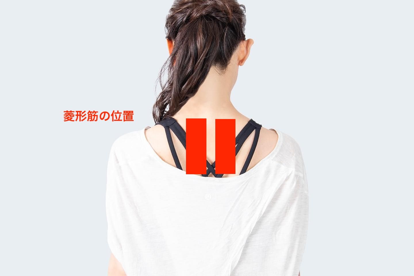 菱形筋は、「小菱形筋」と「大菱形筋」とからなり、背中側の首の下あたりから始まり、肩甲骨の内側につながっています。そして、肩甲骨を引き寄せたり離したりするときに使われる筋肉です。
