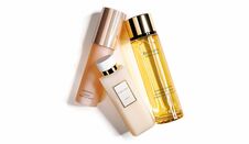 左/ザ・ギンザ エッセンスローション n 200ml ¥22,000、中/シャネル エクラ プルミエ ブライト ミルキー エッセンス 100ml ¥17,820、右/クレ・ド・ポー ボーテ ローションエサンシエルA 170ml ¥14,300