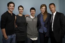 『ラビット・ホール』(2010年) 左から共演のマイルズ・テラー、タミー・ブランチャード、監督のジョン・キャメロン・ミッチェル、アーロン・エッカート