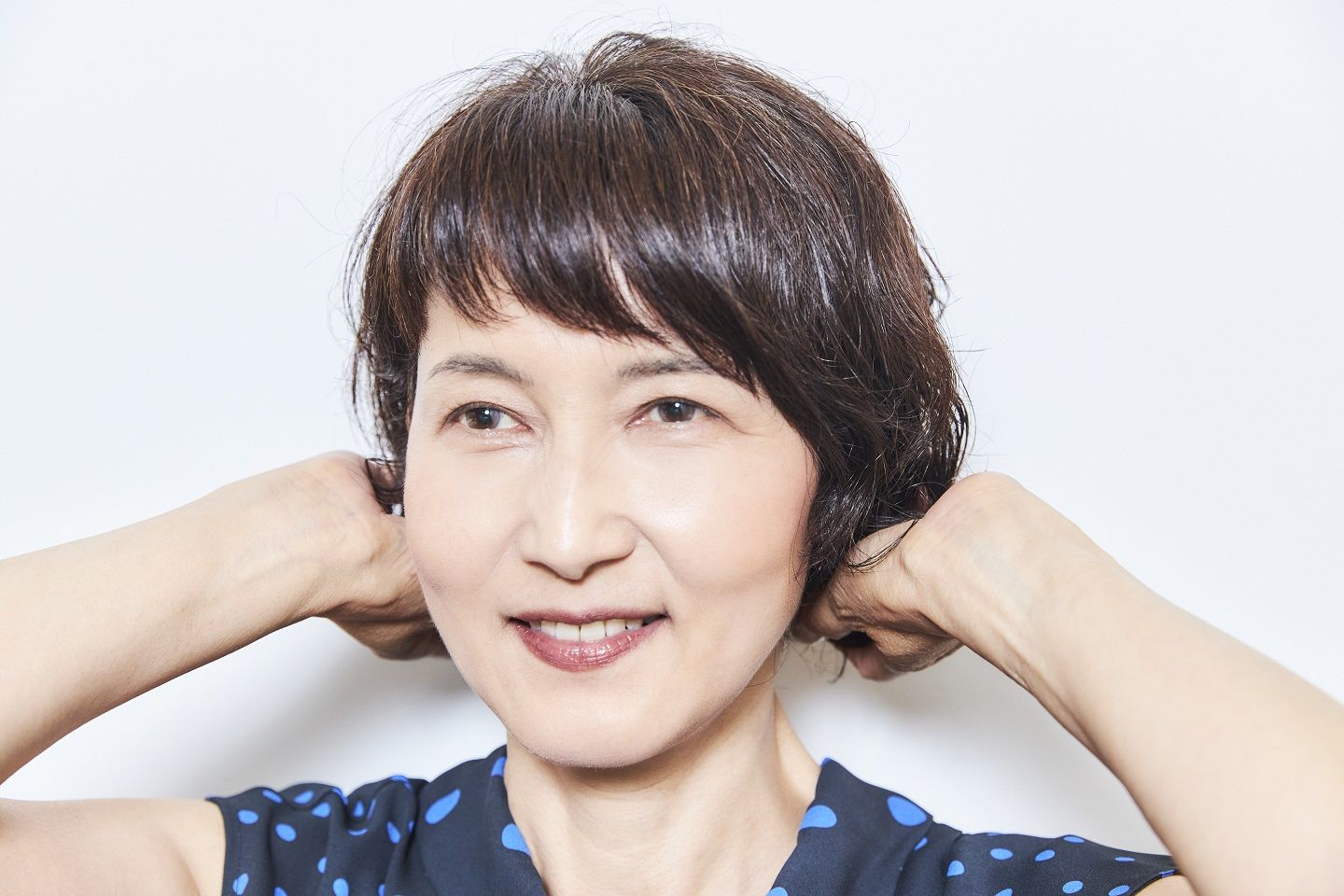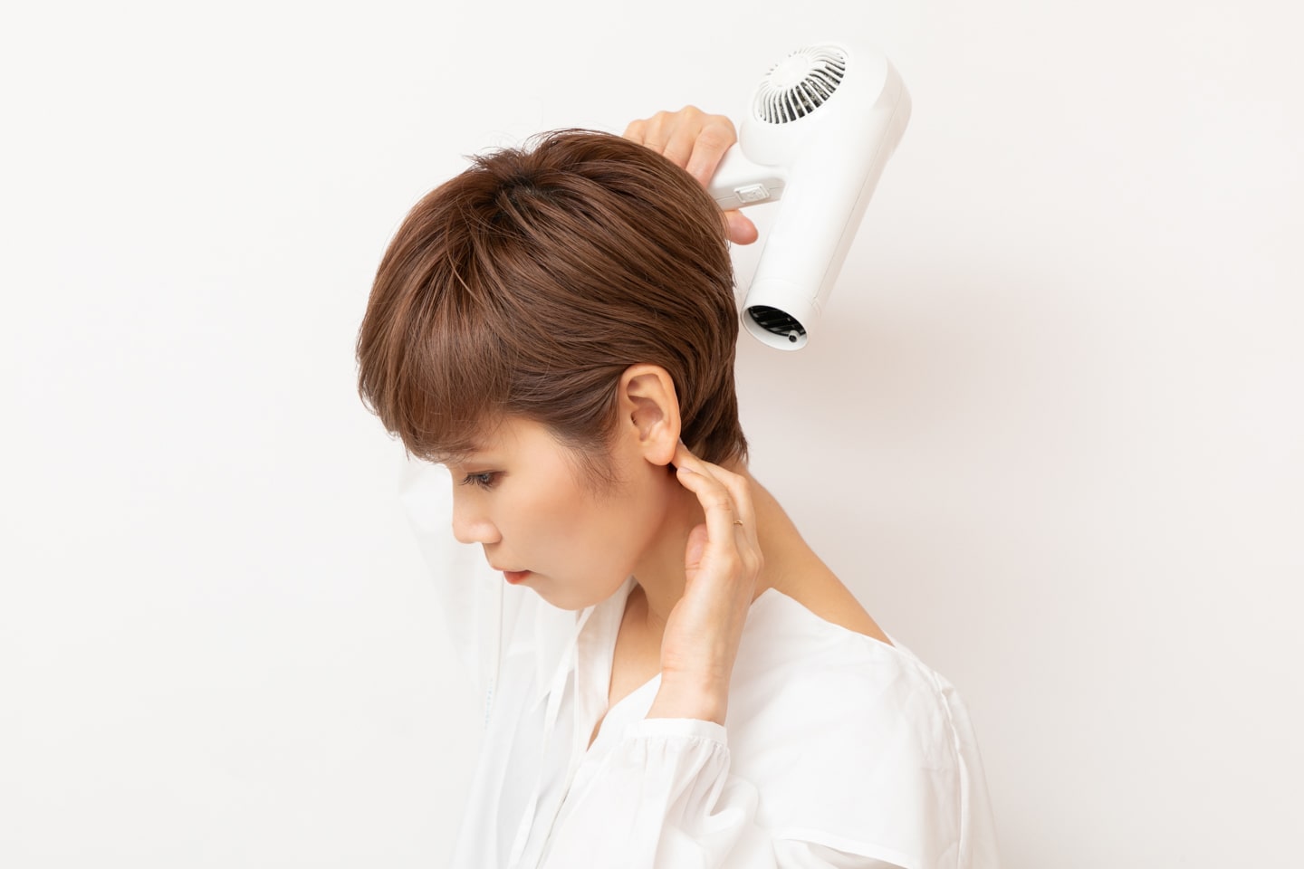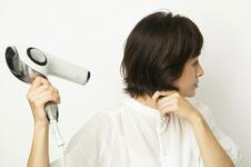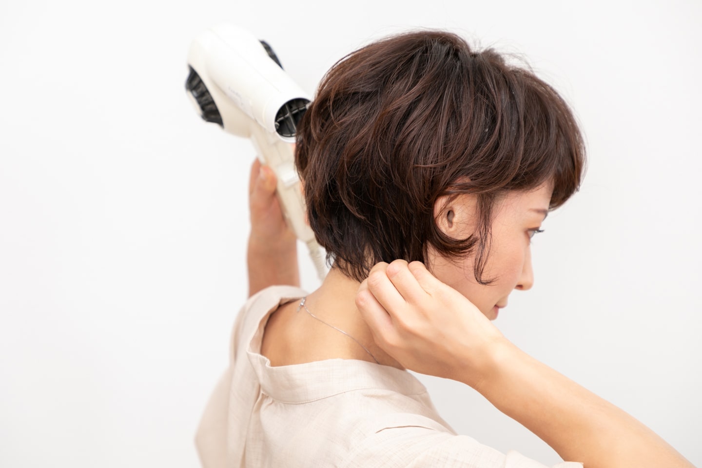 襟足はボリュームが出ないように、首に沿わせるように手でなでつけながら乾かす。