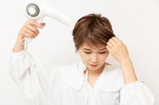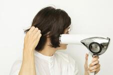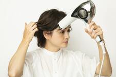 前髪の根元がペタンとしないように、仕上がりと逆側から風をあてて乾かす。