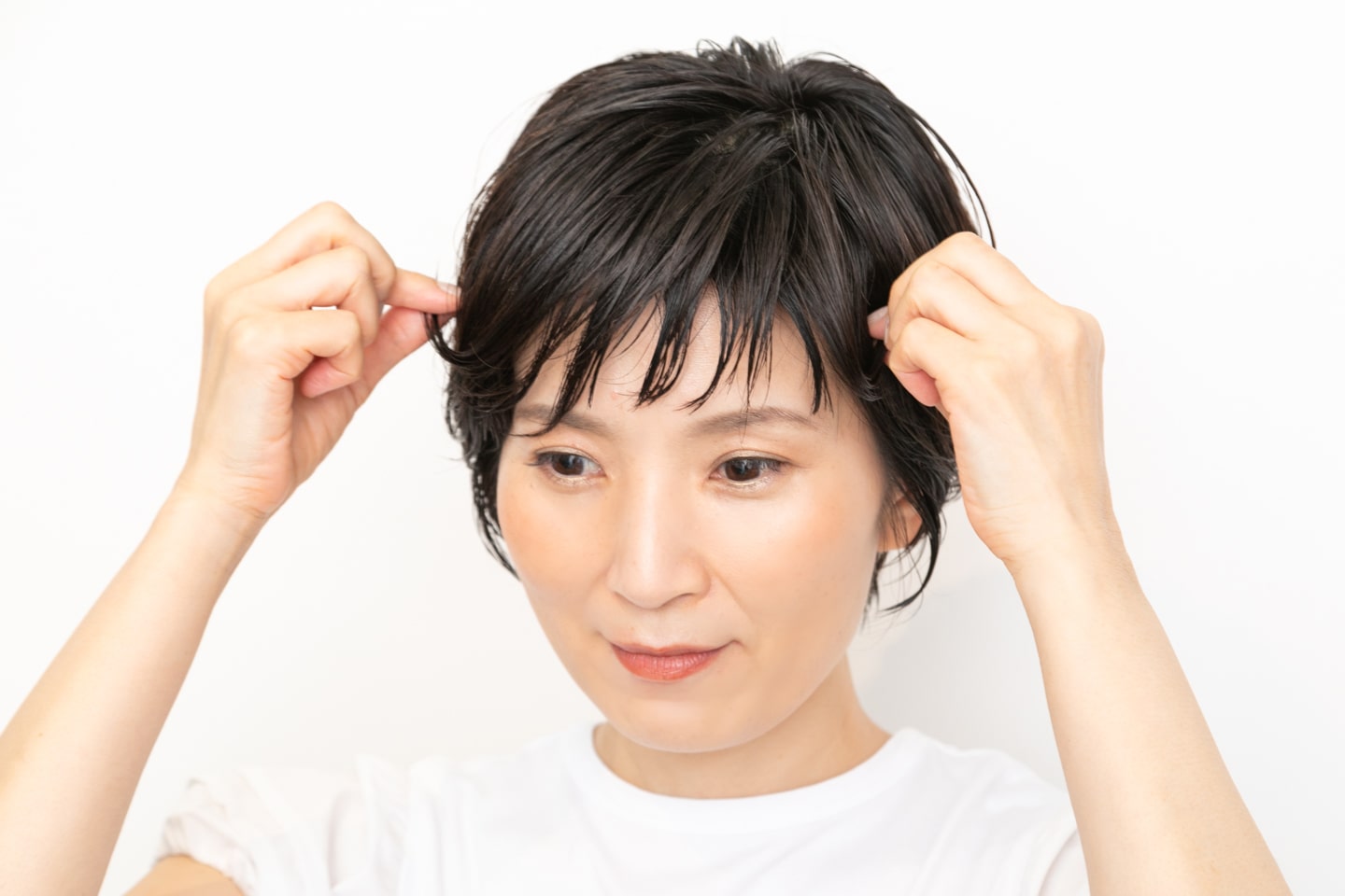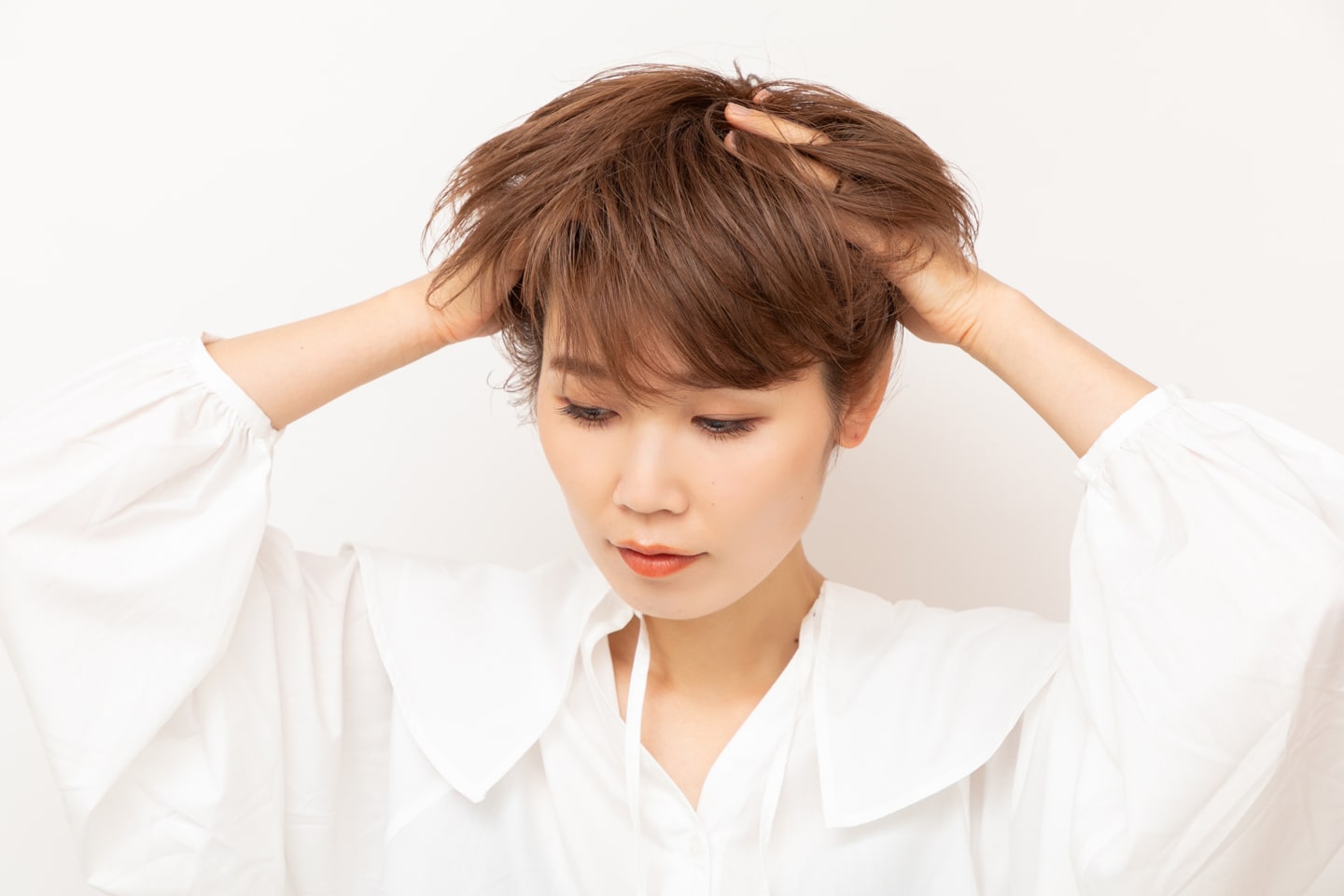 毛先を前に流すように意識して。