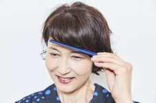 湿気がある日は前髪が浮いてしまったり、くせが出やすくなり不自然に見えてしまうことも…。そんな日はとくに、前髪キープのひと手間を。3でスプレーを塗布したコームで毛先をなでて整えることで、自然に毛流れをキープできる。