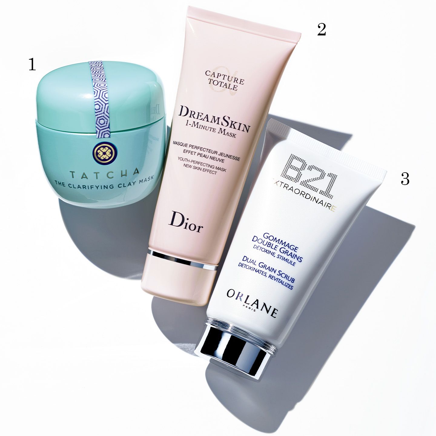 左/タッチャ クラリファイン クレイマスク 50ml ¥8,800、中/パルファン・クリスチャン・ディオール カプチュール トータル ドリームスキン 1ミニット マスク 75ml ¥9,460、右/オルラーヌ B21 エクストラオーディネール ゴマージュドゥ 75ml ¥7,800