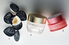 左/シロク FAS ザ ブラック ナイトチャージ マスク 2g×7個 ¥7,700、右/クラランス Mアクティヴ ナイト クリーム N 50ml ¥11,000