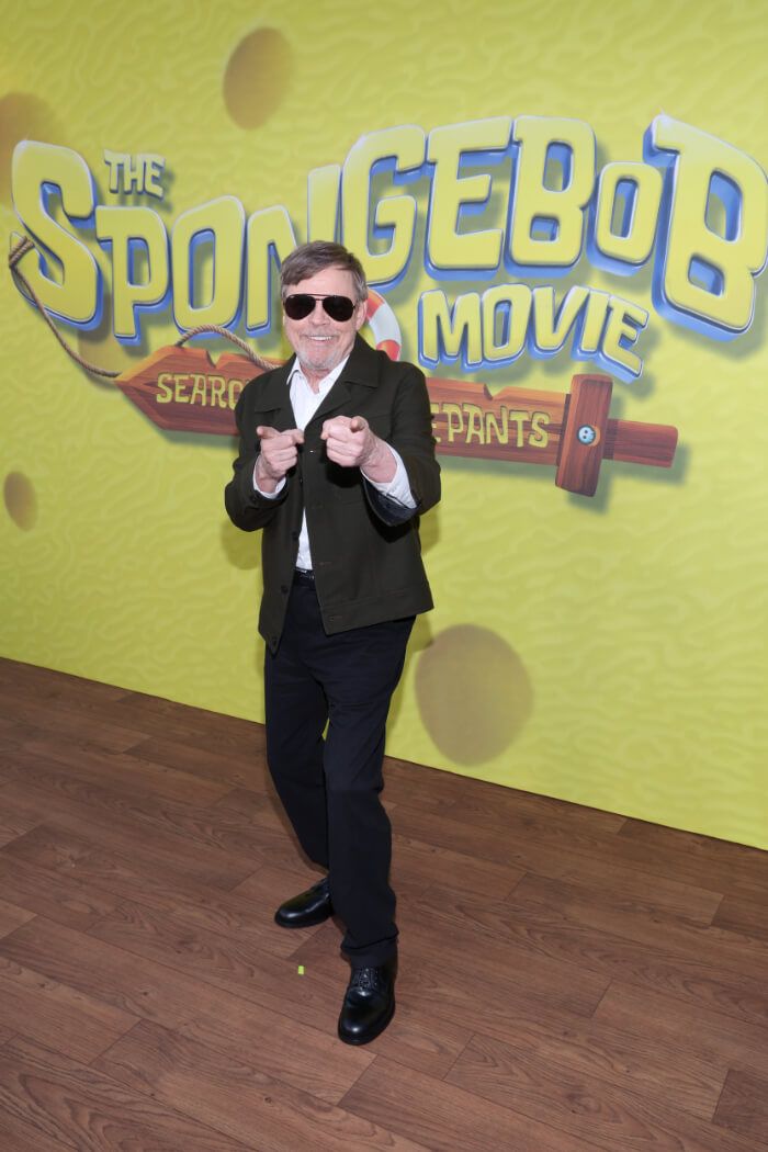 2025年12月15日、ロサンゼルスのパラマウント・ピクチャーズ・スタジオで行われたアニメーション映画『劇場版スポンジ・ボブ 呪われた海賊と大冒険だワワワワワ!』のホリデー上映会。日本では2026年4月1日公開。マーク・ハミルは、同作で「さまよえるオランダ人」の英語版声優を務めた。