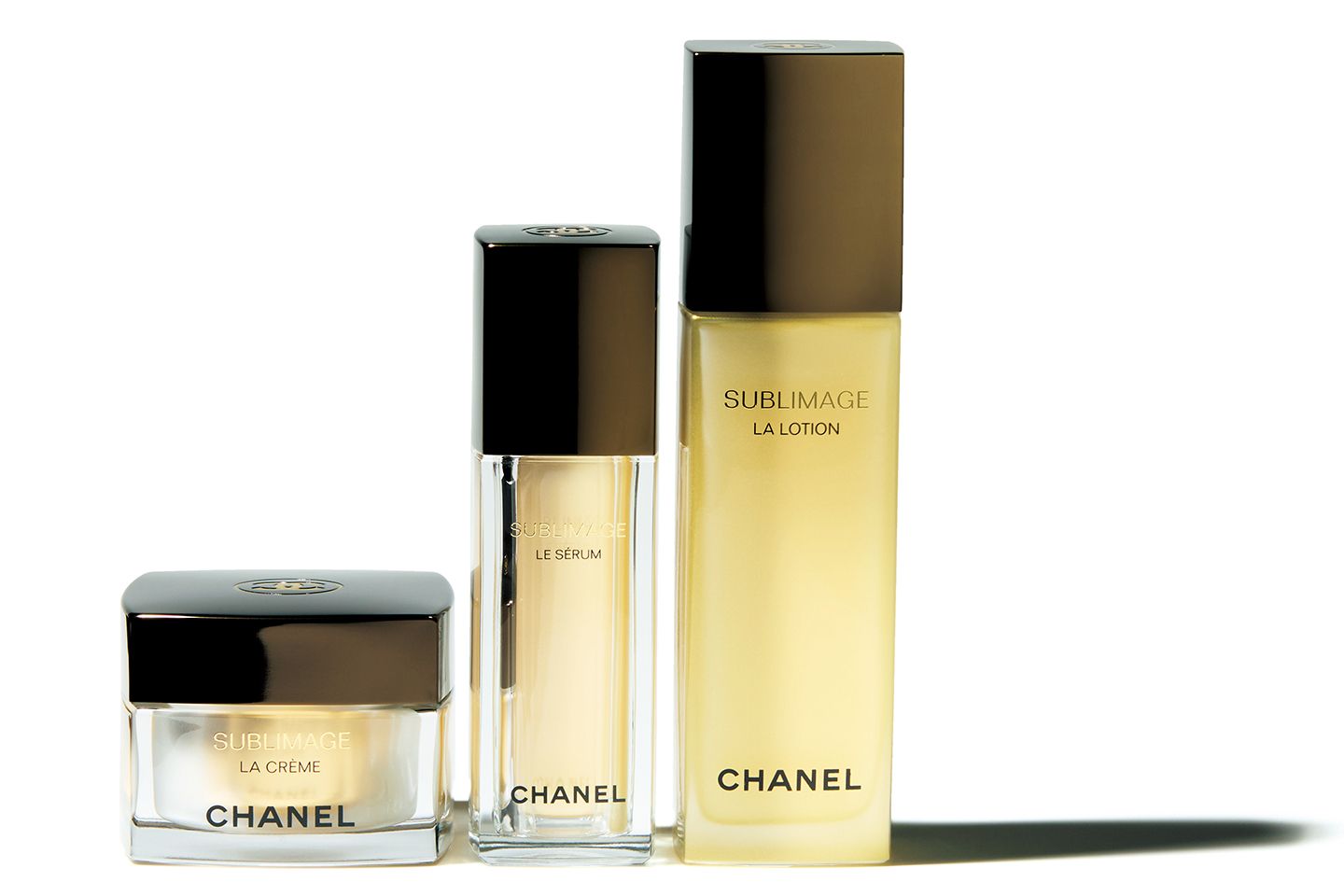 左から/シャネル サブリマージュ ラ クレーム フィン 50g ¥61,600、同 ル セラム 30ml ¥64,900、同 ラ ローション 125ml ¥25,300