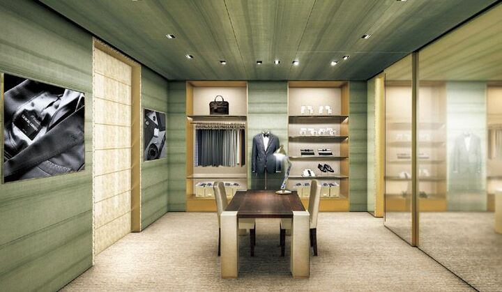 4階はラグジュアリーな多目的スペース「アルマーニ / サローネ」として生まれ変わる。また、このフロアには近年大人気を集めるオーダースーツ『MTM(メイド トゥ メジャー)』のための、「テクニカルルーム」も用意されている。