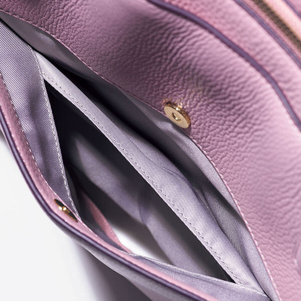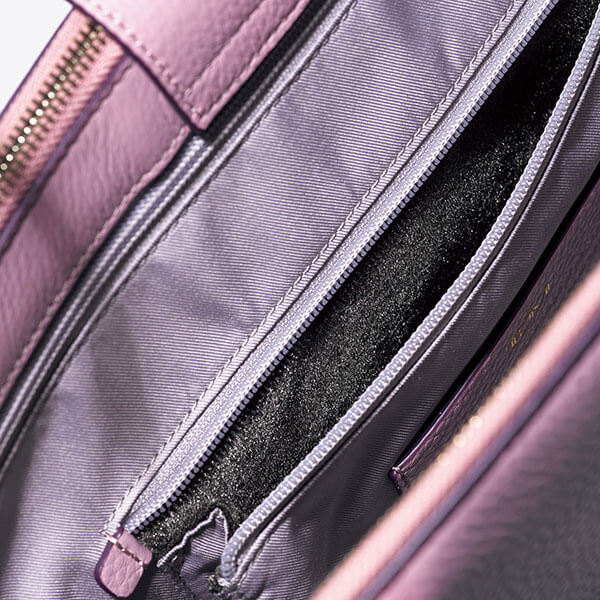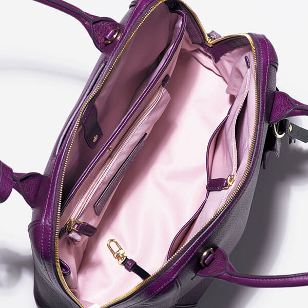 • 大きく開く口と明るいピンクのライニングで、ひと目で中身を確認できます。