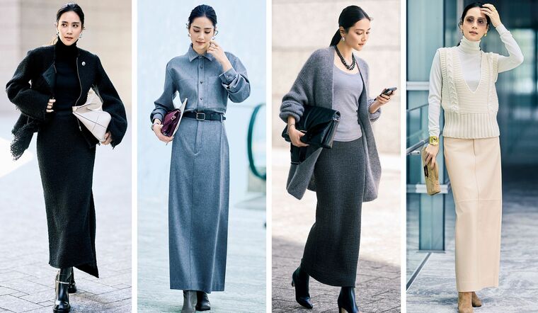 フレアやプリーツのボリュームあるスカートが新鮮に映る今季。脚のラインを拾わない安心感と…