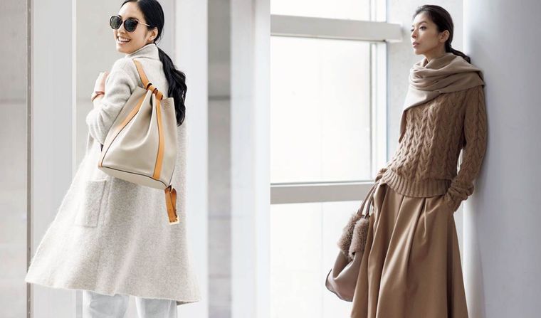 レディースベージュバッグコーデまとめ。着る服を選ばないベージュバッグ。ひとつ持っておく…