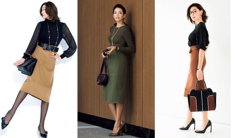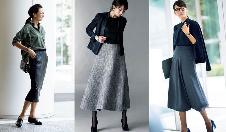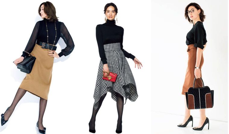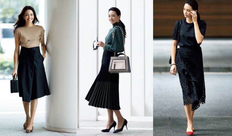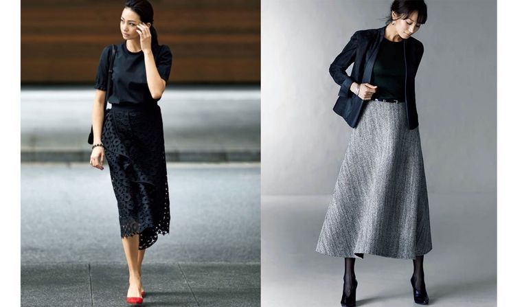 秋の大人のスカートコーデまとめ。この秋におすすめのスカートコーデのご紹介。黒スカートの…