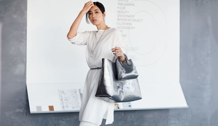 ちょっとした外出には、アクセサリー感覚で持てるシルバーのマイクロミニバッグが相棒に。と…