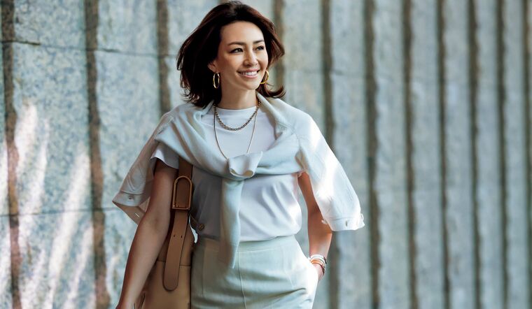 - 春コーデ大人コーデパンツホワイトシャツブラウスファッションニュースセレブ