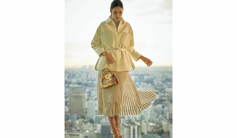 この春は、ウエストマークを駆使して緩急をつけたシルエットが復活。雑誌『Precious』4月号…