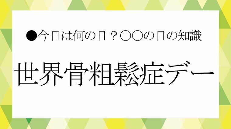 【骨粗鬆症で顔が老ける!?】10月20日は「世…
