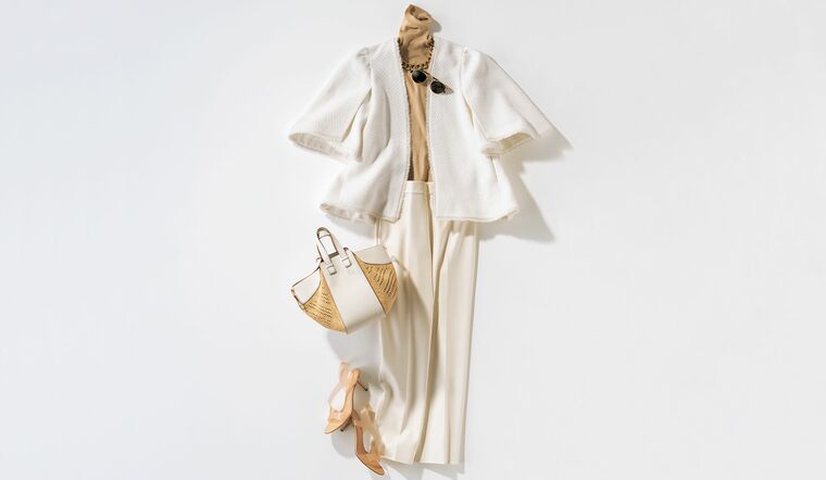 - 春コーデ大人コーデジャケットブラウスバッグパンプスファッションニュースセレブ